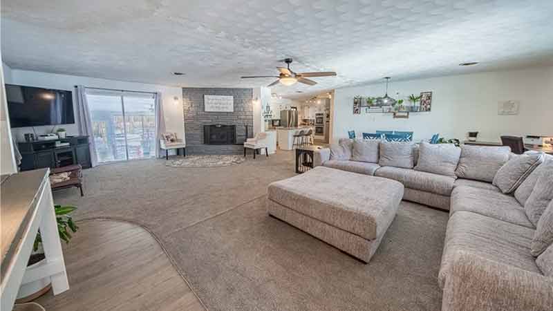 In Town - Spacious 2,700+ sqft brick ranch with 4 bedrooms, 2 baths, nicely situated on 2.59 acres with a fenced yard. Renovated home offers comfort, functionality, and room to grow! Granite counters, stainless appliances, primary bath with double shower, large sunroom, wood-burning fireplace, and detached 1,100 sqft workshop. Convenient to schools and a public boat landing.