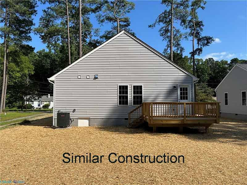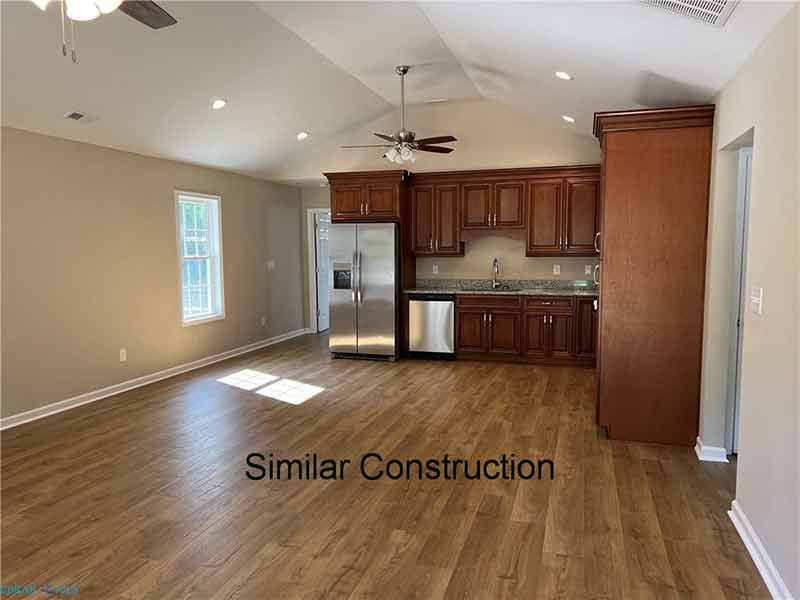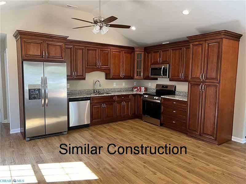 New construction will be a 3-bedroom, 2-bath ranch-style house with granite countertops, stainless appliances, and a vaulted ceiling in the living room and kitchen area. Water access community near Deltaville.