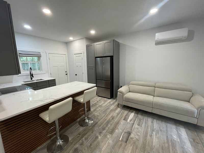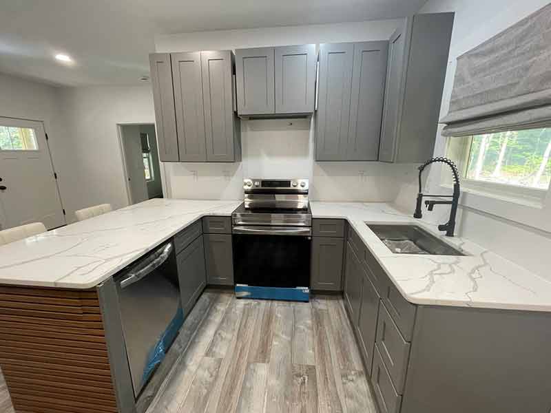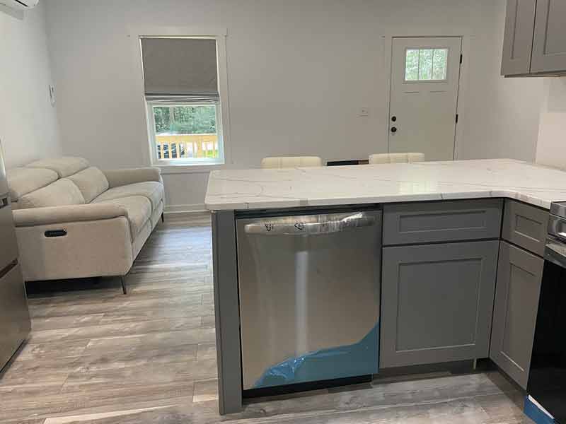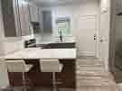 New, quaint turn-key partially furnished 1 bedroom home. Kitchen with stainless steel appliances including refrigerator, dishwasher, microwave, smooth top range. Quartz countertops with bar, bar stools, pantry and sleek grey cabinets complete this beautiful, functional kitchen. A comfy recliner sofa is provided in the adjacent living area. The bedroom has a new queen size bed already in place and a full size stackable washer/dryer. There is also another room that could function as a second bedroom, office or storage area. Elegant bathroom with walk-in shower and tile floors. Waterproof laminate floors, front and rear porches. Community amenities include 3 boat ramps, beach areas, fishing piers, playground and cooking area.