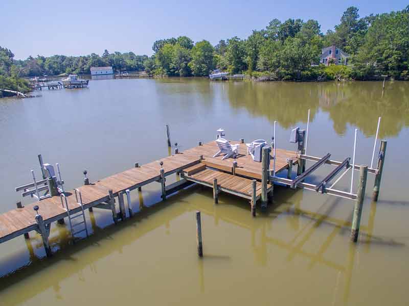 Perfect for entertaining or relaxing. Fabulous contemporary home featuring walls of glass overlooking the creek and an in-ground pool. Three private bedrooms and three and a half baths. Spacious open areas with high ceilings. Kitchen, dining, and living spaces open to a wraparound deck and tall glass walls that overlook the Gunite pool and scenic creek views. Attached two-car finished garage and a separate oversized two-car garage with a upstairs area including two bedrooms, one bath, a living space, kitchen, and open deck. Pier with boatlift and jet ski lift. 3.5 feet MLW. Fenced dog run outside and partially inside the garage. Beautifully landscaped grounds and paved driveway. Property being sold furnished, excluding a few personal items. Great neighborhood—just minutes from Urbanna!