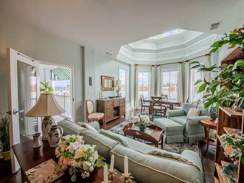 Beautifully appointed condo overlooking Urbanna Creek with stunning views! The great room features a "Turret" ceiling, two spacious primary suites, and two fully upgraded connecting baths. Custom closets provide excellent storage. Two balconies, including one screened. Elevator and stairway access. Mostly furnished — move-in ready! Deep-water boat slip, storage unit, community pool, firepit sitting area, and more! Low maintenance.
