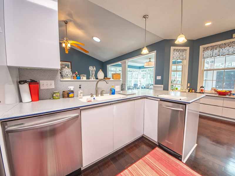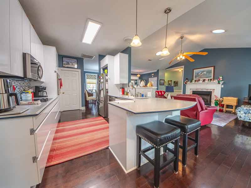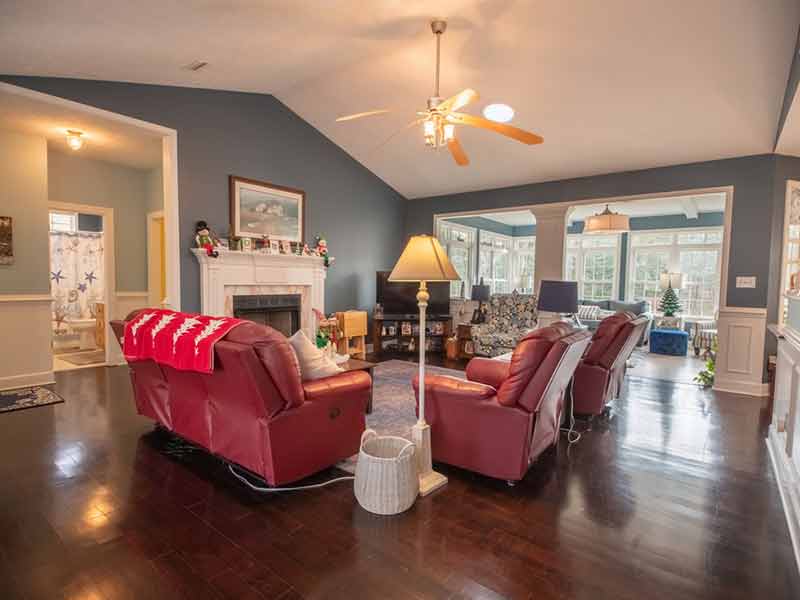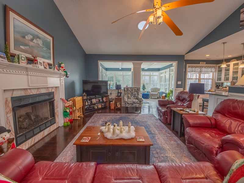 Enjoy open living in this well-maintained home with 4 bedrooms and 2 bathrooms in a great, well-established community. Great views of the pond! Sunroom with vaulted ceilings. Marble fireplace, wood floors, Velux sun tunnels, wainscoting, chair rail, and crown molding. Encapsulated crawlspace with circulating fan, automatic generator, gutter drainage system, and a 2-car garage with opener.