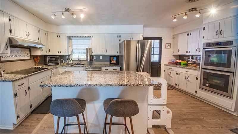 In Town - Spacious 2,700+ sqft brick ranch with 4 bedrooms, 2 baths, nicely situated on 2.59 acres with a fenced yard. Renovated home offers comfort, functionality, and room to grow! Granite counters, stainless appliances, primary bath with double shower, large sunroom, wood-burning fireplace, and detached 1,100 sqft workshop. Convenient to schools and a public boat landing.