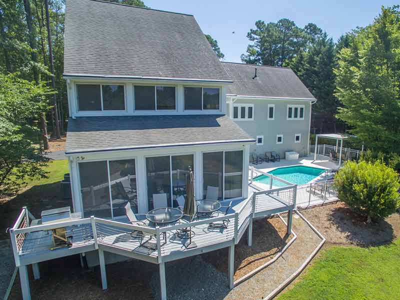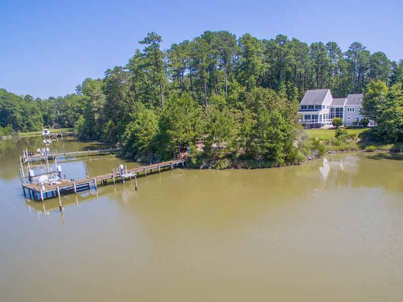 Perfect for entertaining or relaxing. Fabulous contemporary home featuring walls of glass overlooking the creek and an in-ground pool. Three private bedrooms and three and a half baths. Spacious open areas with high ceilings. Kitchen, dining, and living spaces open to a wraparound deck and tall glass walls that overlook the Gunite pool and scenic creek views. Attached two-car finished garage and a separate oversized two-car garage with a upstairs area including two bedrooms, one bath, a living space, kitchen, and open deck. Pier with boatlift and jet ski lift. 3.5 feet MLW. Fenced dog run outside and partially inside the garage. Beautifully landscaped grounds and paved driveway. Property being sold furnished, excluding a few personal items. Great neighborhood—just minutes from Urbanna!