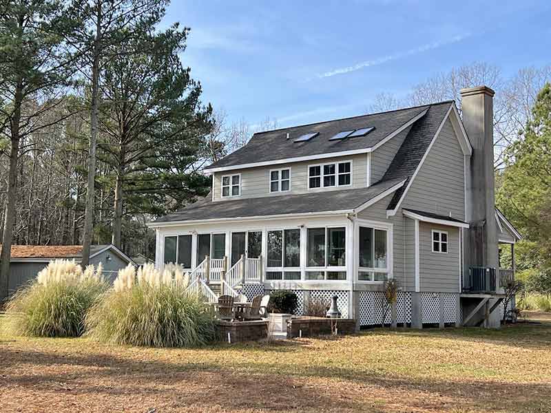 Lovely Cape in a most desirable setting just off Chesapeake Bay. 3 bedrooms, 2 baths, Hardiplank siding, hardwood floors, granite counters, custom cabinets, closed-in porch with views of the Bay. Storage shed. Pier, kayaking in deep water. Furnishings negotiable.